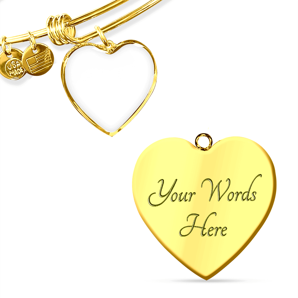 Custom Photo Gold Heart Charm Bangle Bracelet