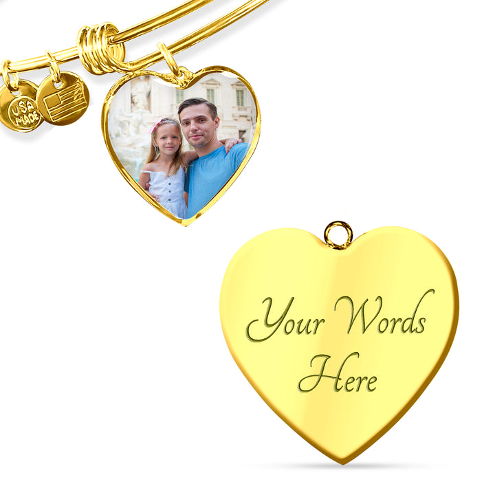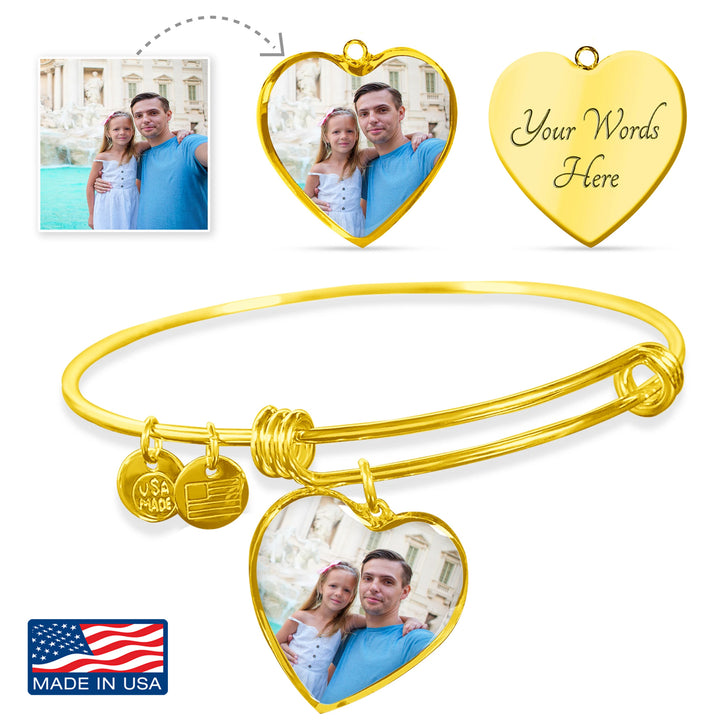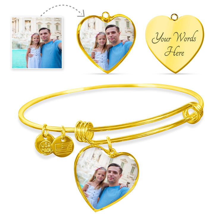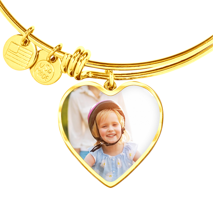 Custom Photo Gold Heart Charm Bangle Bracelet