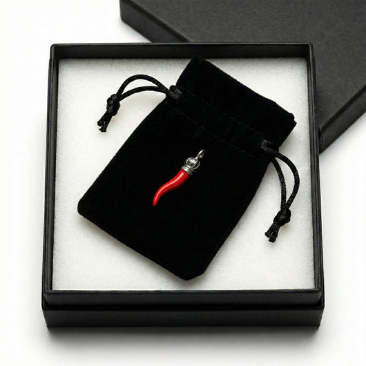 Italian Red Horn Pendant - Silver Cornicello Good Luck Pendant