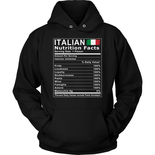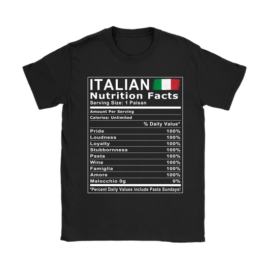 Italian Nutrition Facts Shirt